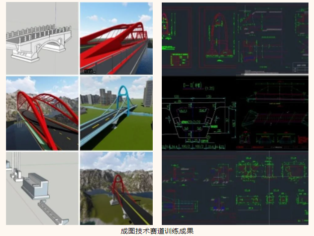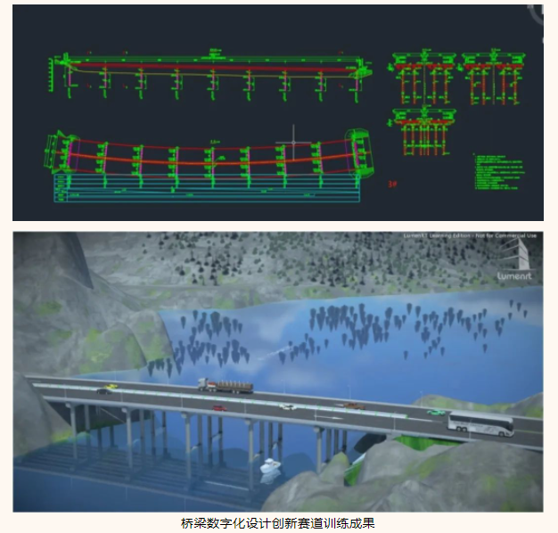 大浪淘沙沙去尽, 沙尽之时见真金。为备战此次竞赛,参赛队伍克服了重重压力和困难,尤其是大赛新增了赛道,备赛时间短,涉及软件多,考核内容繁杂,在指导老师的指导下,都表现出出色的实力和顽强的毅力,积极投入训练。训练过程中,为克服枯燥的重复,桥梁三维建模时,指导老师会利用不同的桥型,让学生们以竞赛的形式训练,提升训练的趣味性。