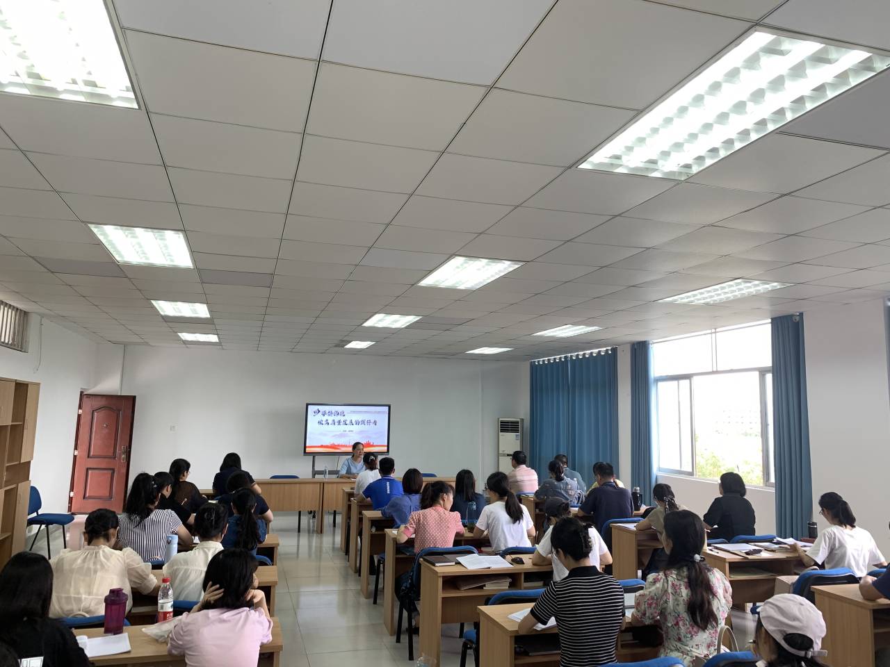 莫海燕副书记主要从“学习习近平新时代中国特色社会主义思想,以学铸魂,不断提高自身思想政治素养”“学习习近平总书记关于师德师风重要论述,增强做好师资队伍建设工作的底气”两个方面,并结合自身学习与思考、以及大量生动鲜活的案例展开阐述,既有理论的高度,又有现实的深度和广度,具有很强的思想性、指导性。