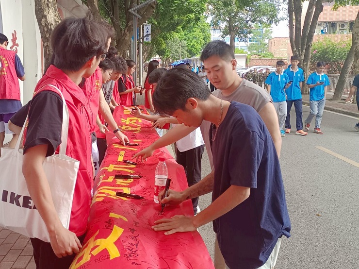 同时,组织师生在校道开展铭记历史签名活动,该活动以“牢记历史,勿忘九一八,以史为鉴,爱我中华”为主题,广大师生积极参加,用签名的形式表达自己的缅怀之情,提醒自己铭记历史,不忘伤痛,砥砺前行,不让历史重演,要为中华民族的伟大复兴贡献自己的力量。