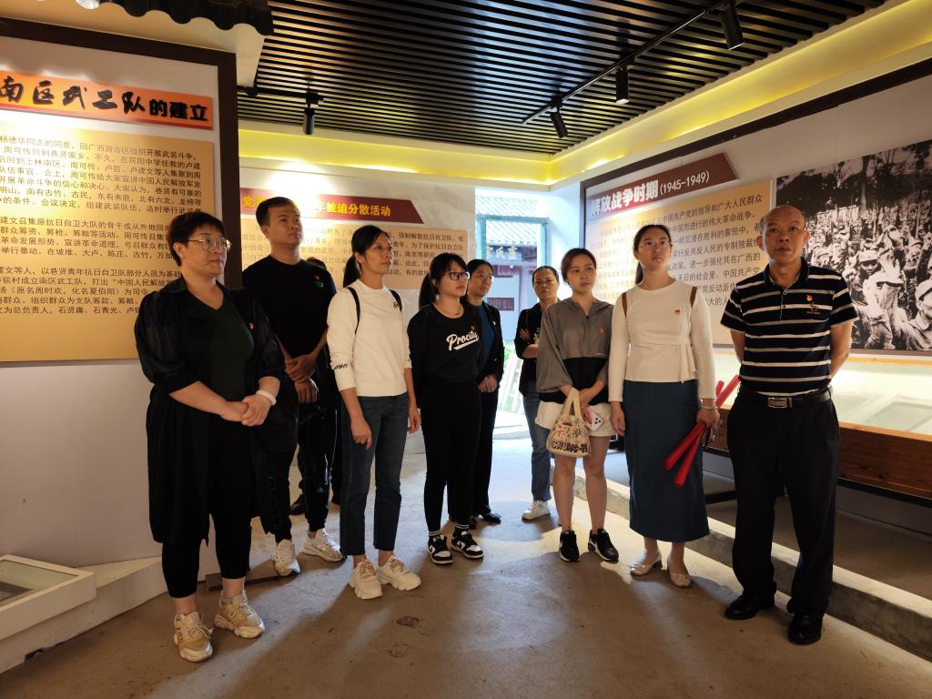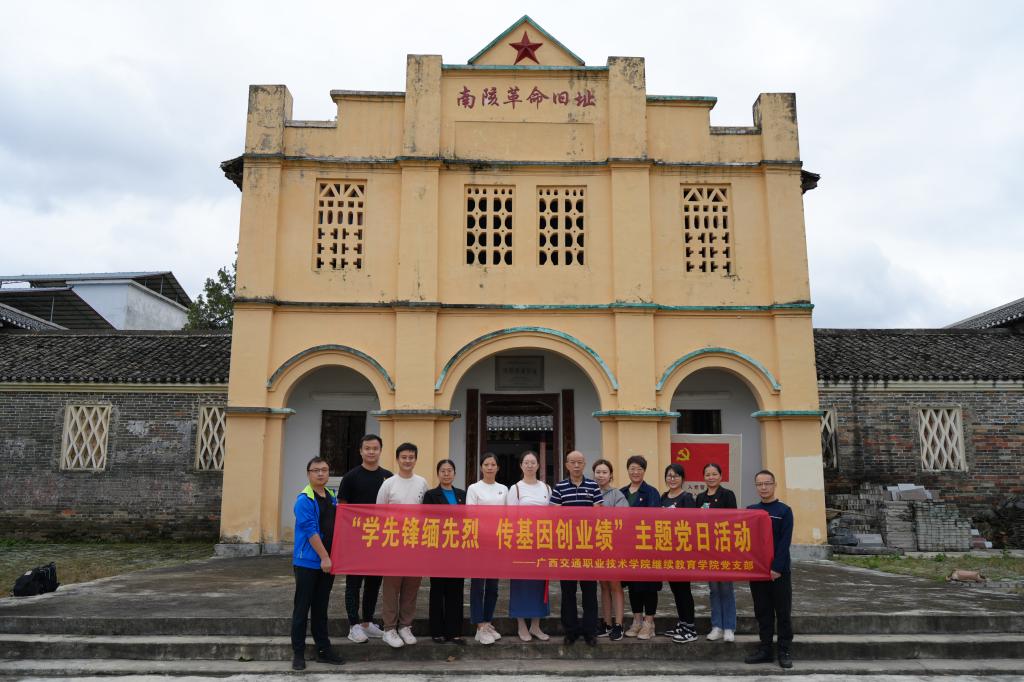 (继续教育学院党支部 讯 李曲/文)10月20日,继续教育学院党支部组织支部党员赴南宁市爱国主义教育基地——上林县南陔革命旧址开展“学先锋缅先烈 传基因创业绩”主题党日活动。9名党员带着追寻红色足迹的虔诚之心,聆听红色故事,探寻红色文脉,重温入党誓词,在行走中感悟革命历史,在共鸣中传承红色基因,
