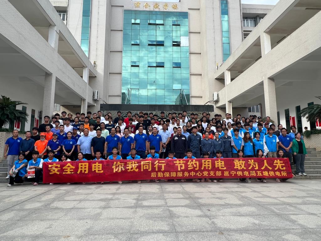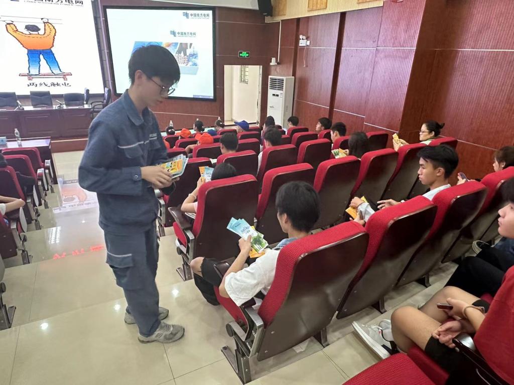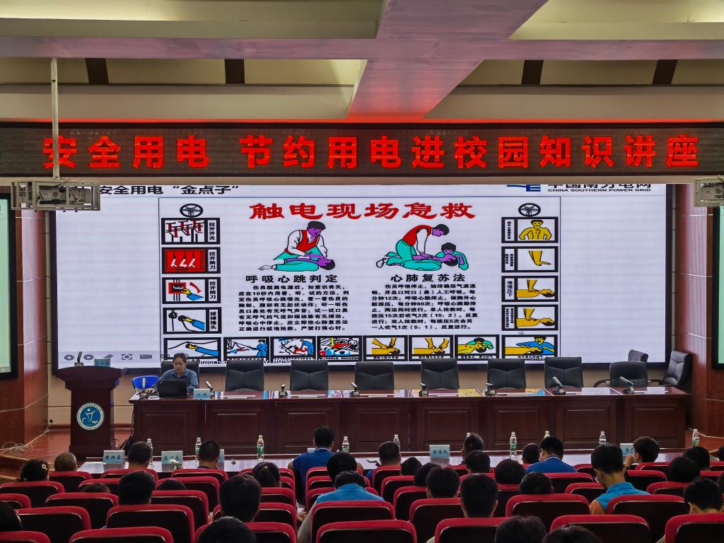(后勤保障服务中心 讯 黄少雄文/陈炳霖 图)10月24日下午,后勤中心党支部联合南宁邕宁供电局五塘供电所在第一学术报告厅开展安全用电知识讲座,后勤中心全体人员、各二级学院学生代表、物业人员代表、食堂人员代表、义务消防队员及春雨行动协会学生代表共计220多人聆听了此次讲座,讲座由后勤中心副主任白克云主持。