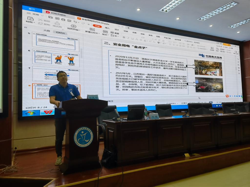 讲座开始,由五塘供电所刘璟专家逐一从电流对人体的伤害、安全用电“金点子”、电力法及供电营业规则、节约用电小知识等四个方面内容全面系统的为在座师生员工上了生动的一堂课。还对日常触电原因、脱离电源的注意事项和生活电器的正确使用方法等进行了详细讲解,并结合近年发生的真实案例,针对校园用电知识,从触电预防、触电急救基本常识、防触电材料的选用等方面作了详细介绍,使在场人员对安全用电有了更加深刻的认识,深切感受到“安全用电,人人有责”的重要性。