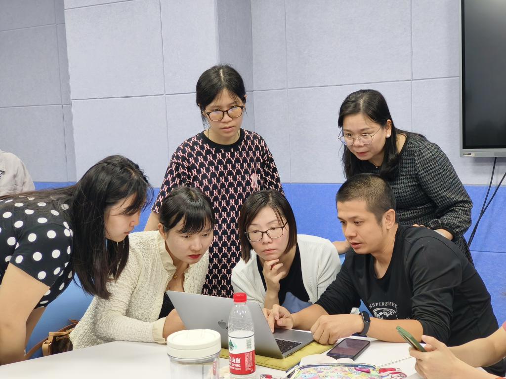 潘老师结合部门“两基一文”方案,从如何创设进阶式学习任务到试题的编排,从样卷的编辑到学习效果评价,详细讲解,耐心解惑;平日里讲台上滔滔不绝神采飞扬的老师们此刻化身一个个求知若渴的“学生”,或聚精会神,或动手演练,在交流环节,大家积极提问、主动探究、热烈讨论、收获满满。