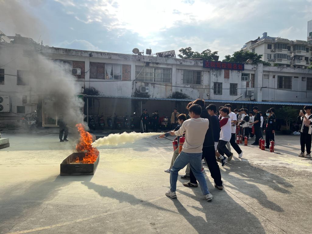 随后进行灭火实操演练环节,现场演示消防器材正确操作方法,学生积极参与使用灭火器灭火实践,真正掌握灭火器的正确使用方法。