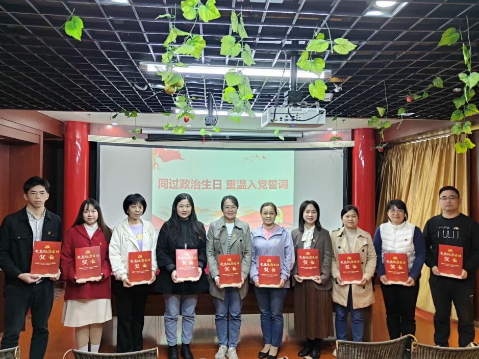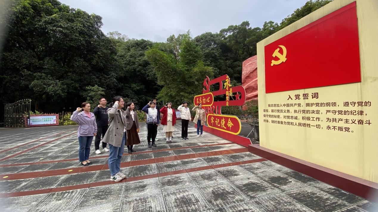 最后,党员同志们同过政治生日,受赠“政治生日”贺卡,在中共广西省工委横县会议纪念馆广场前,党员同志们面对鲜红的党旗,庄严举起右拳,重温入党誓词:“我志愿加入中国共产党……”声音铿锵而有力,神圣而豪迈。