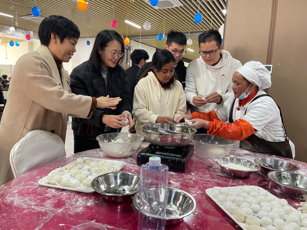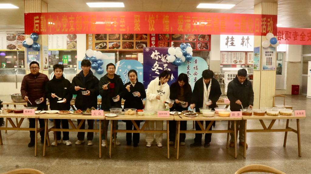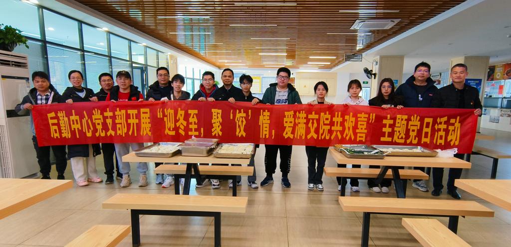 (后勤保障服务中心 讯 黄少雄/文 王宇冰/图)12月22日下午,在冬至来临之际,后勤中心党支部组织开展“迎冬至,聚‘饺’情,爱满交院共欢喜”主题党日活动。活动分别在昆仑校区东区食堂、园湖食堂、相思湖食堂同时举行,后勤中心领导班子、后勤党支部全体党员、各部门老师代表、物业人员代表、食堂员工代表、学生代表参加此次活动。