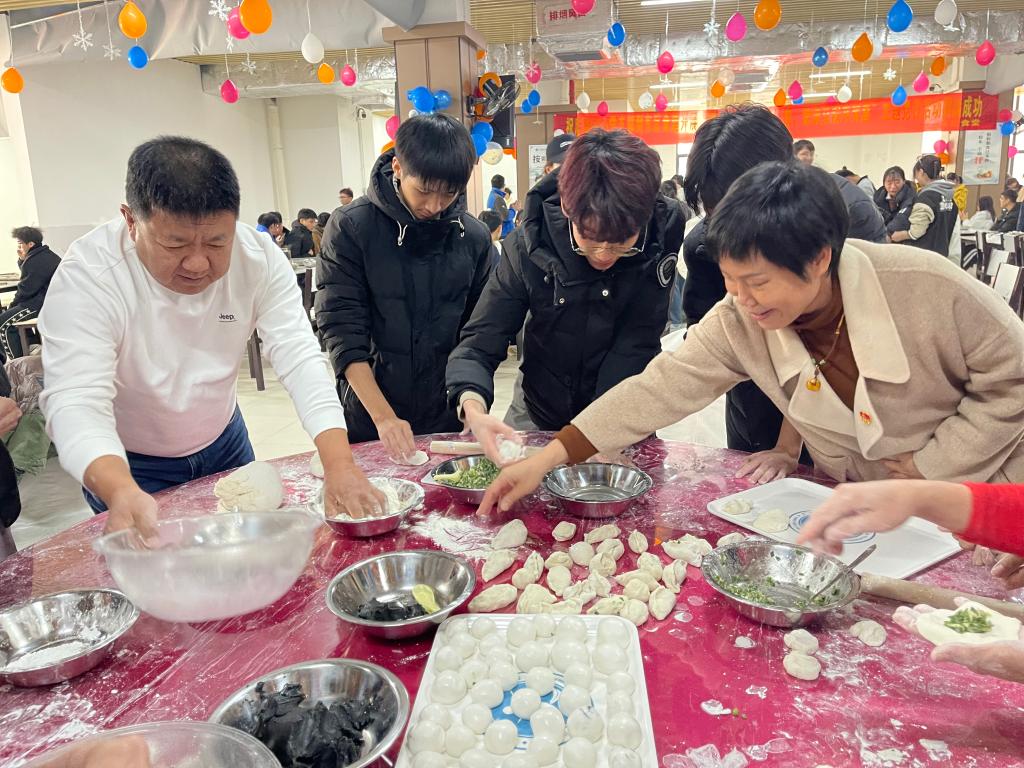 伴随着主持人介绍冬至的由来:“冬至,又称冬节、亚岁、长至节等,兼具自然与人文两大内涵,既是二十四节气中一个重要的节气,也是中国民间的传统节日,冬至是一年中夜最漫长的一天,冬至是中国重要的传统节日,有冬至大如年的说法,吃饺子、汤圆是冬至特有的习俗......”,本次冬至包饺子活动正式开始。