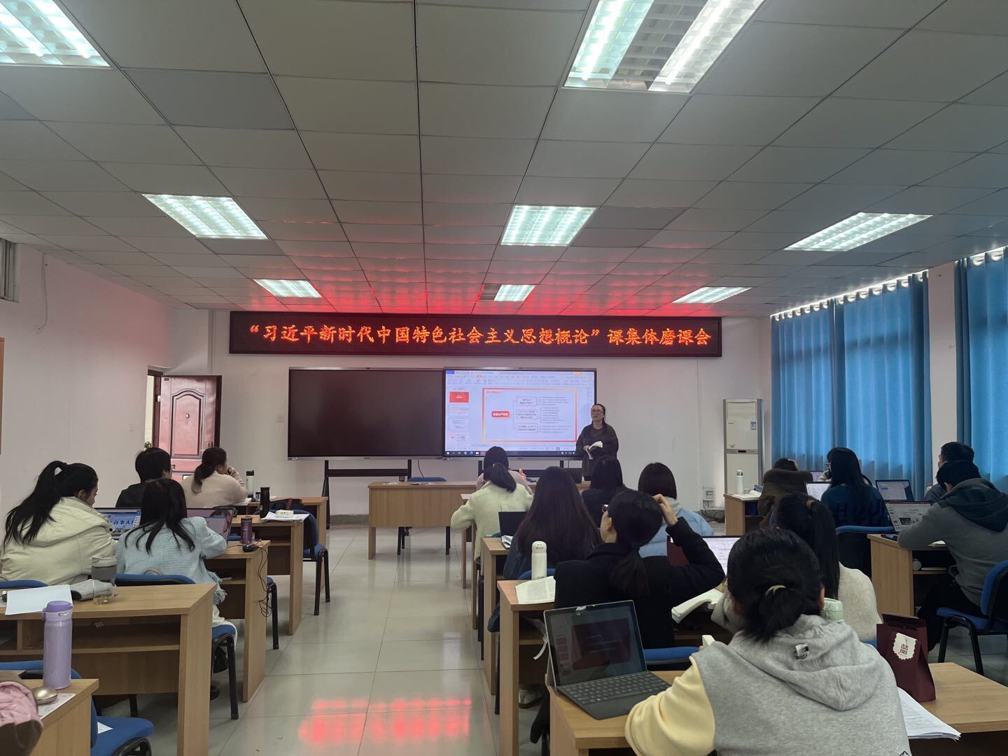 全体思政课教师纷纷表示,此次集体磨课会是一次学习、研讨、交流,也是为下学期开好讲好“习近平新时代中国特色社会主义思想概论”课的备战演练。我们要以此次集体磨课会为契机,努力学深学透习近平新时代中国特色社会主义思想,学好用好《习近平新时代中国特色社会主义思想概论》教材,不断提高理论与实践相结合的能力,不断提升理论研究水平、教育教学能力,更好用习近平新时代中国特色社会主义思想培根铸魂。