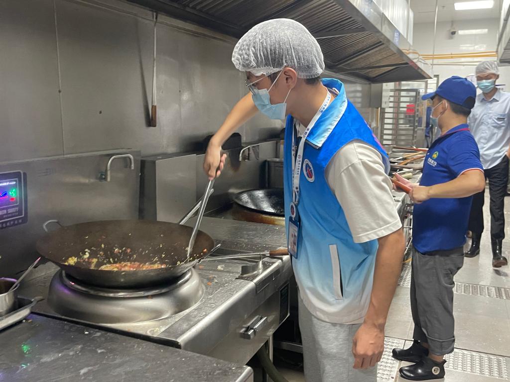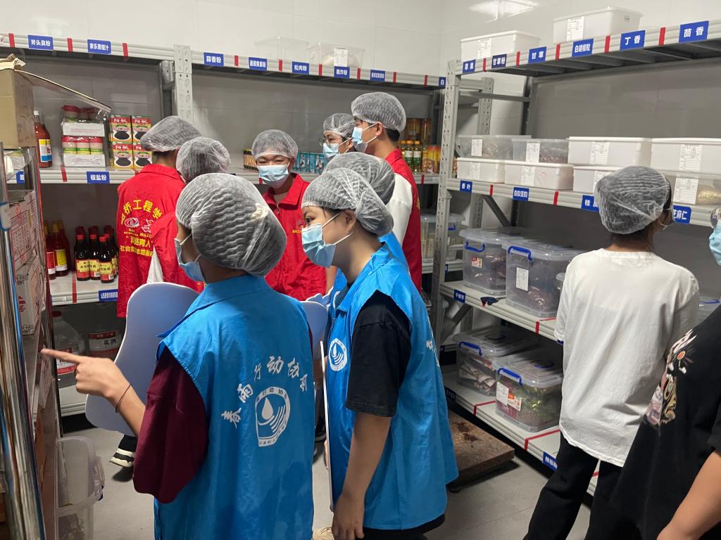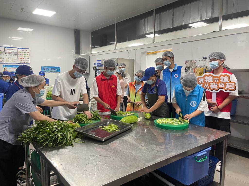 在东区食堂工作人员的带领下,大家有序地进入后厨工作间进行参观,了解了食堂后厨的工作环境、工作流程等,亲自体验食堂人员制作每一道菜品的各个环节。食堂厨师现场讲解每个环节的制作规范性,在采购和备菜环节,食堂工作人员根据在校师生的消费量按需采买,并将每一种食材物尽其用。在售餐环节,食堂推出小份菜,敦促同学们践行光盘行动,避免铺张浪费。食堂大厅随处可见宣传节约粮食的海报,电视机里播放宣传节约粮食的视频,时时提醒师生将“节约”观念入心入脑,营造了厉行节约的浓厚氛围。