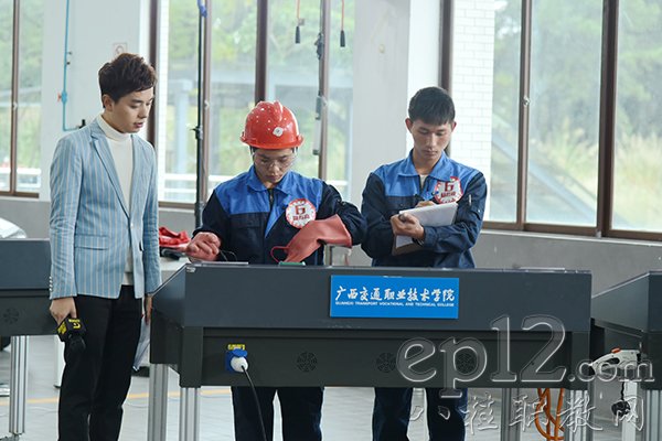录制中,广西交通职院汽车工程系优秀学子向现场观众展示了汽车检测与维修技术与新能源汽车技术两项技能比拼。比赛首先通过突围赛,从6组选手中择优选拔出两组选手,再与技能王进行比拼。本次邀请到的技能王是来自北京百通科信机械设备有限公司技术总监吴少华、广西万博友菱汽车销售服务有限公司技术总监李代乙和企业代表作为评委。在技能王比拼中,广西交通职院挑战团队用高效、专业的技能完成了挑战,最终得到裁判和在场企业嘉宾的高度认可。