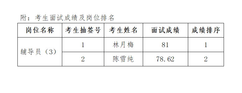 PP电子游戏网站2022年公开招聘非实名人员控制数人员辅导员(3)岗位并列成绩考生加试面试工作已于2022年7月8日结束,现将考生面试成绩及岗位排名予以公布。