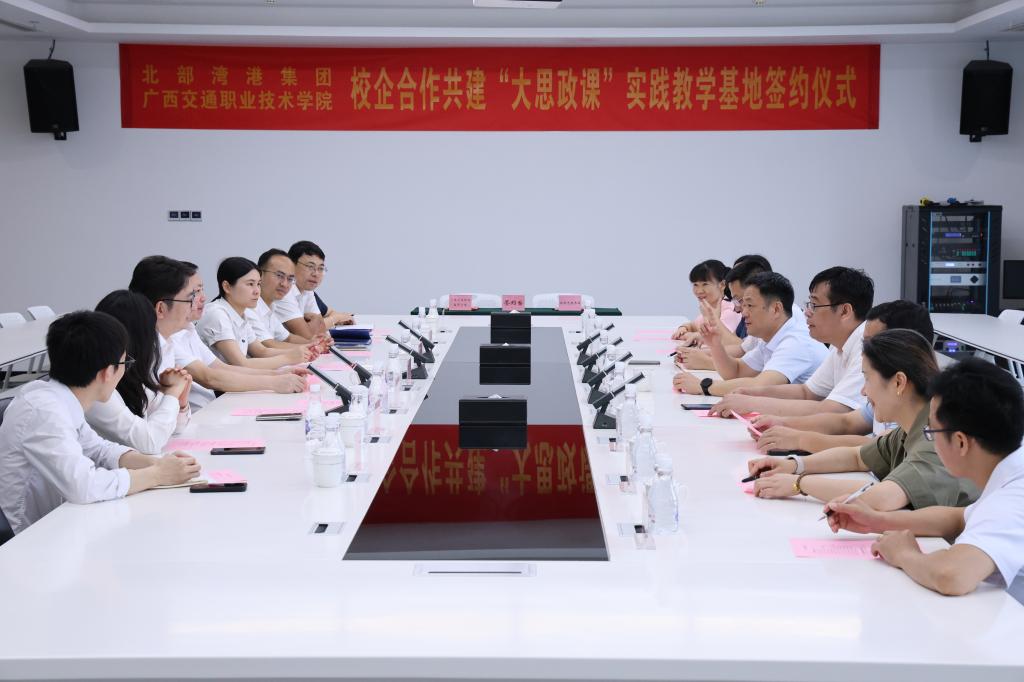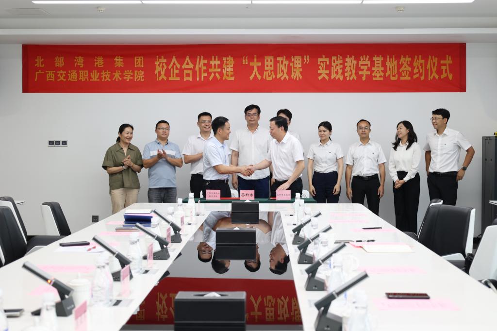 广西北部湾国际港务集团有限公司作为西部陆海新通道建设的核心企业,是广西融入共建“一带一路”倡议的践行者,承担着打造“四个一流”港口的重任,依托在海港、内河港、船闸等多业务板块优质资产,在数字化转型、智能化以及人工智能方面有着丰富经验。此次合作双方将依托北部湾港自动化码头、智慧港口等重大工程场景及学校教育教学资源,打造“理论+实践”“课堂+现场”的立体化思政育人体系,通过组织学生参与港口运营实践、智慧物流调研、工匠精神传承等活动,推动思政教育与企业生产实践深度融合。