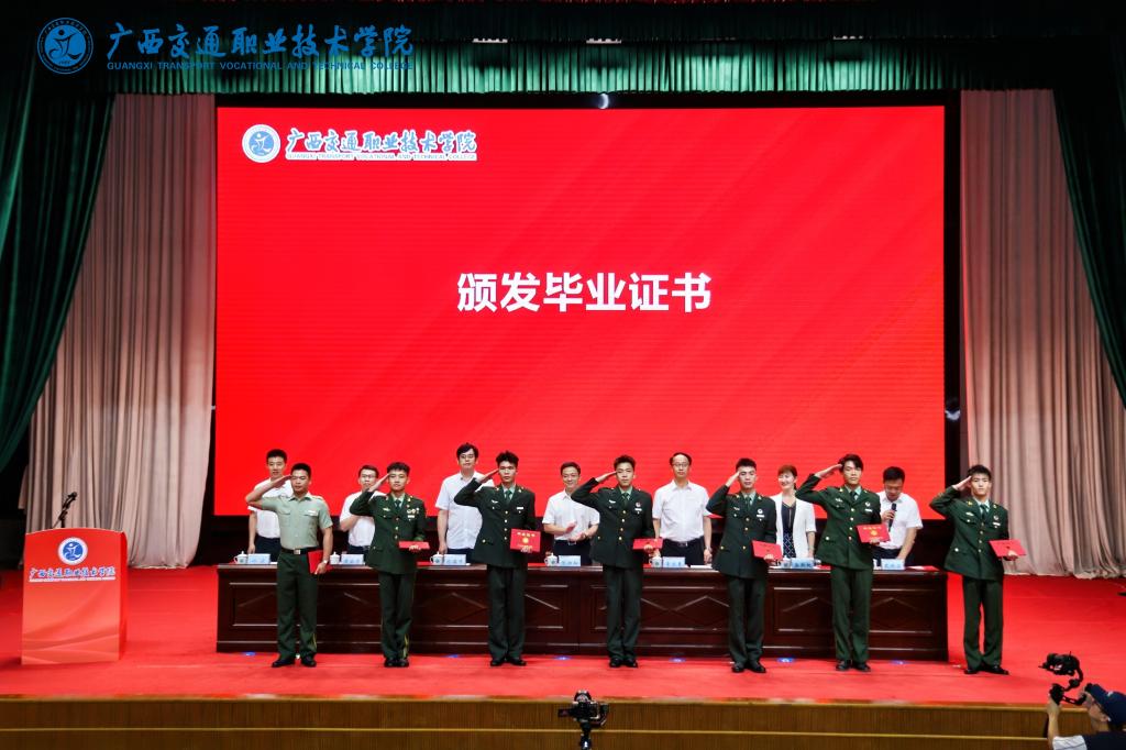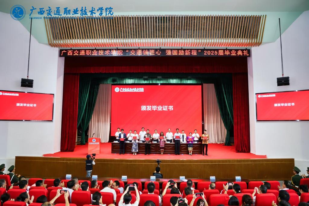 汽车工程学院汽车营销专业杨文琳代表2025届毕业生发言,回顾三年在专业成长坐标轴上的深耕与努力,以“争做广西交通领域发展开路先锋”为誓言,代表全体毕业生庄严承诺,要为“交通强国”宏伟蓝图贡献青春力量。