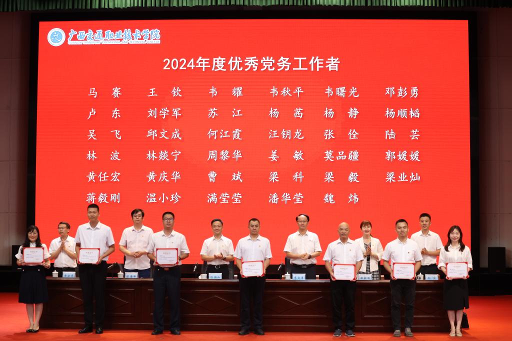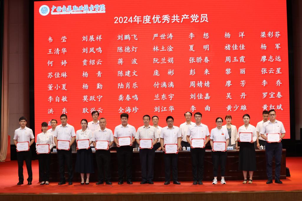 (党委办公室、宣传部 讯 梁静芸、郑枢/文)奋斗未有竟时,赶考永不停歇。7月1日下午,学校庆祝中国共产党成立104周年暨“两优一先”表彰大会在园湖校区大礼堂隆重举行。学校党委书记陈湘如在大会上作主旨讲话,号召全校党员以更加饱满的热情、更加昂扬的斗志、更加务实的作风,深化改革谋突破,转型发展开新局,为加快创建交通职业技术大学,谱写新时代壮美广西建设的交院篇章而团结奋斗!