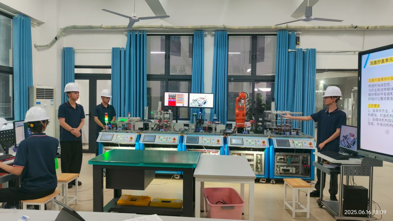 自接到赛事通知以来,学校第一时间组建专业备赛团队,由经验丰富的教师担任指导,围绕比赛规则、技术要点、考核维度制定专项训练方案。备赛期间,指导教师团队全程陪伴,从智能装备的智能化生产线安装与调试,运维与应用,开展模拟场景实战演练。参赛学子更是不负期望,日夜扎根实训场地,反复打磨技术细节,不断优化方案设计,在一次次试错与改进中攻克技术瓶颈,将“精益求精”的工匠精神融入每一个操作环节。