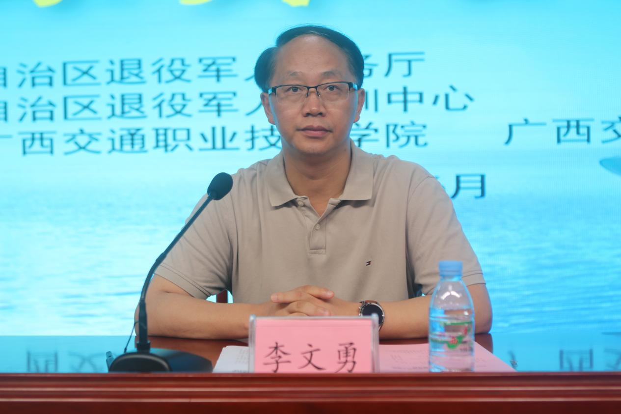 李文勇校长介绍了学校和广西交通运输学校的基本情况,他指出,学校坚持以学员为中心,高度重视对退役军人海员的培训,优先调配设施设备和师资力量,全力支持海员培训的教学工作。同时,向参训学员提出殷切期望:希望大家完成从“战场”到“职场”的华丽转变,成为祖国、成为广西本土优秀的航海技能人才!