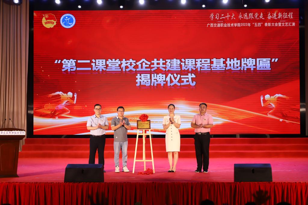 随后,举行了新团员入团仪式暨超龄团员离团仪式和“第二课堂校企共建课程基地”揭牌仪式。学校被全国学校共青团研究中心、“到梦空间”全国运营中心评为“第二课堂校企共建课程基地”,此次学校成功入选广西首批“第二课堂校企共建课程基地”,将进一步加快实践育人质量提升,充分发挥第二课堂课程优势,着力提升学生的综合素质和社会化能力。