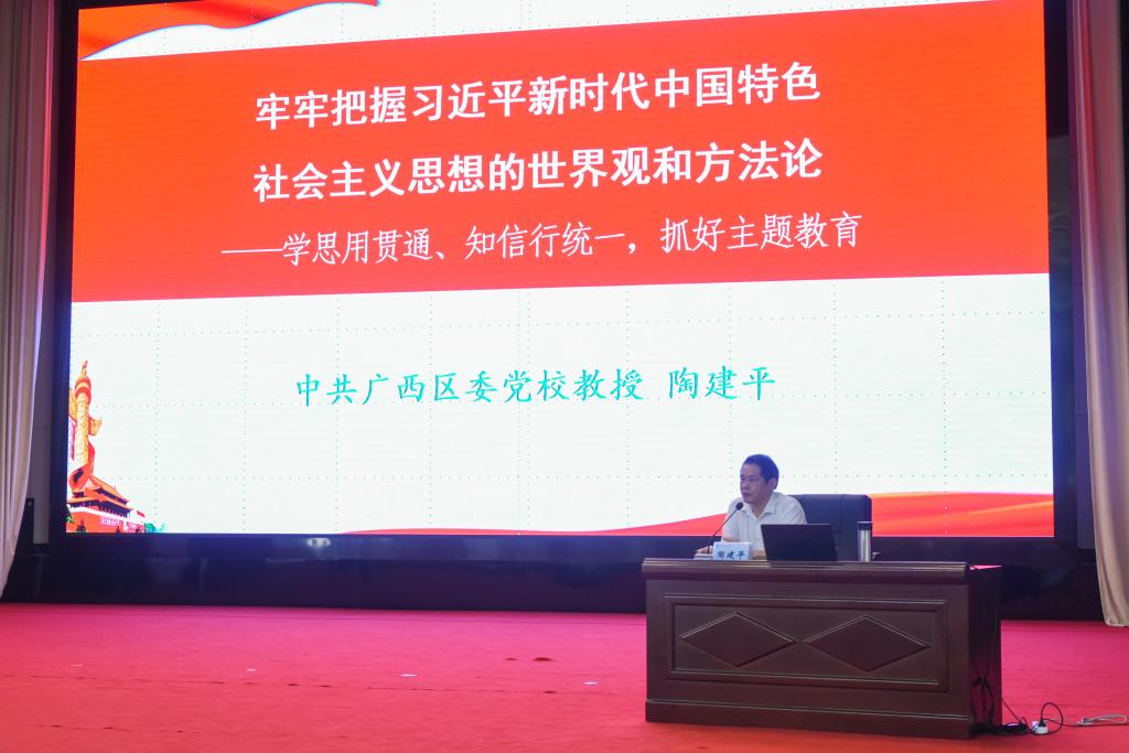 会议邀请中共广西区委党校(广西行政学院)陶建平教授作《牢牢把握习近平新时代中国特色社会主义思想的世界观和方法论——学思用贯通、知信行统一,抓好主题教育》专题辅导。