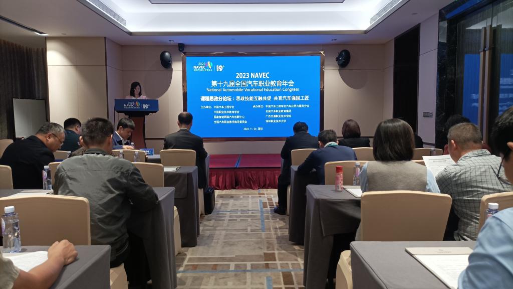 (汽车工程学院 讯 )2023年11月24-26日,第十九届全国汽车职业教育年会在广东深圳隆重召开,共有来自全国300多家汽车产业龙头企业、职业院校、行业专业等八百余名专家学者围绕“共商共融,推动新汽车人才高质量发展”主题,凝聚共识,共同推动新汽车人才的高质量发展,为我国汽车产业高质量可持续发展提供强有力的人才支撑。