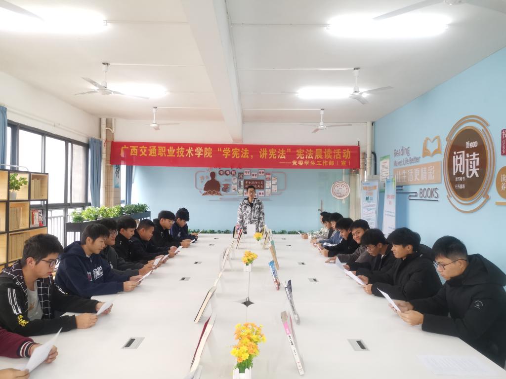 学生在“一站式”学生社区润心书屋开展宪法晨读活动