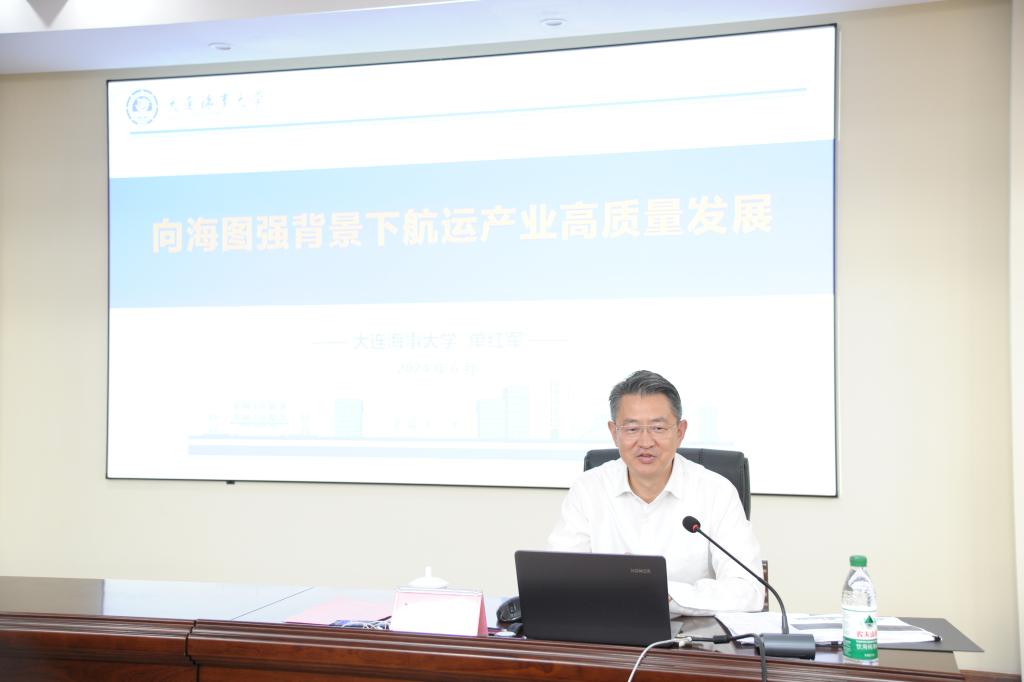 大连海事大学校长单红军以《向海图强背景下航运产业高质量发展》为题主讲专题讲座,向参培学员系统介绍了“向海图强”的历史逻辑与现实意义、航运产业高质量发展的时代内涵以及发展路径,深入分析了航运产业的发展趋势。