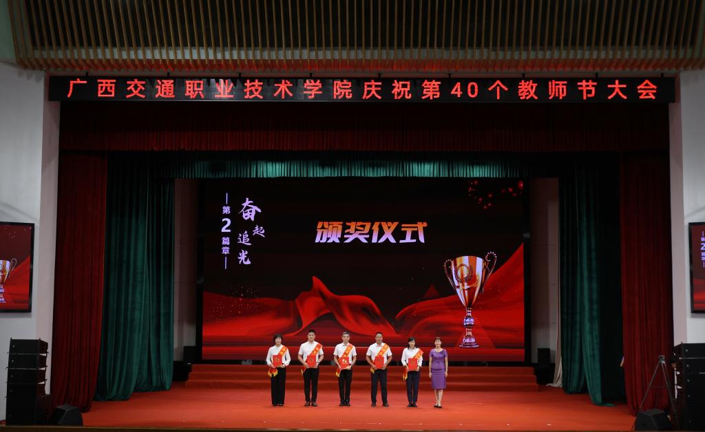 自治区交通运输厅党组成员、副厅长陈津维为获奖教师代表颁奖