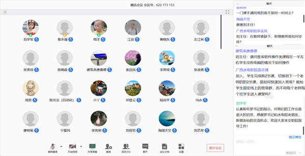 在互动环节中,与会人员借助腾讯会议平台进行了充分的交流与互动。广西水利电力职院党委书记罗显克同志全程参与了研讨活动,罗书记对我院汽车工程系开展线上教学所做的工作给予了充分的肯定,对汽车工程系师生为线上教学工作所付出的努力和开展的探索表示赞赏,并对本校的线上教学工作提出了具体的要求。