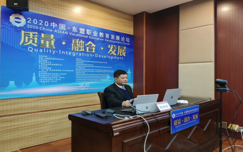 (东盟国际学院 讯)12月10日至12日,由中国-东盟职业教育研究中心主办,南宁师范大学承办的“2020中国-东盟职业教育发展论坛”在南宁召开。12月11日上午,学校党委书记温宗胤作为特邀嘉宾在论坛上发表《携同企业走进东盟,构建发展共同体——探索职业教育国际化产教融合发展新模式》的演讲,介绍了PP电子国际化产教融合的发展思路及目标,从西引、中融、东输三个方面分享了PP电子的主要做法及成效,并提出了未来的努力方向。
