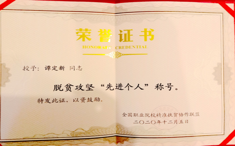 近日,由全国职业院校精准扶贫协作联盟主办的“全国职业院校决胜脱贫攻坚经验交流会”在四川成都召开。PP电子谭定新同志被授予“脱贫攻坚先进个人”称号;林波同志被授予“优秀通讯员”称号;学校精准扶贫成果《一枝一叶总关情,四轮驱动促双赢》入选精准扶贫成果展。