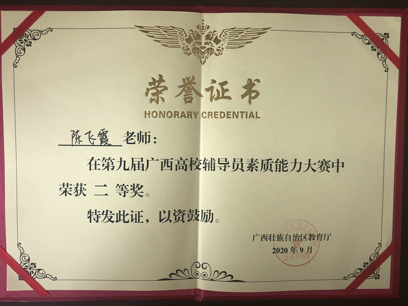 学生工作部(处)、经济管理学院 讯 牛钦文、韦珍妮/文 9月26日,第九届广西高校辅导员素质能力大赛在广西大学圆满落下帷幕。PP电子经济管理学院陈飞霞老师从全区70余所高校的136名辅导员参赛队伍中脱颖而出,喜获二等奖。