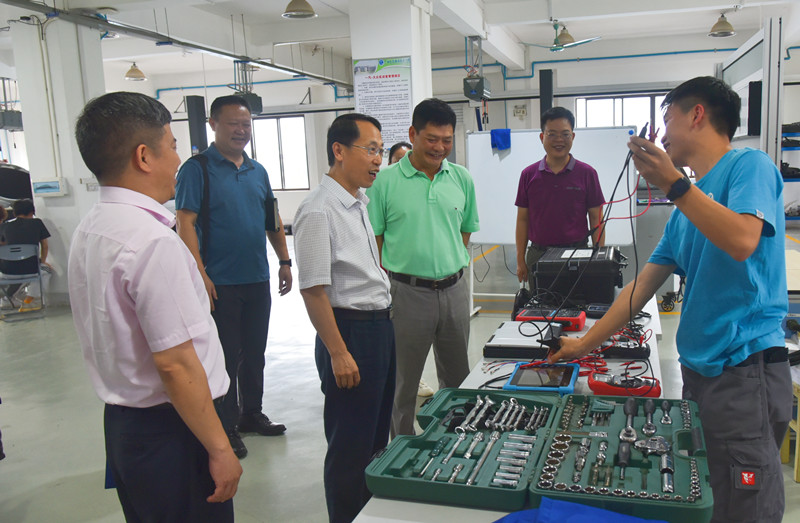 自治区技能大赛专家组实地参观了智慧物流作业方案设计与实施、汽车技术、智能电梯装调与维护等3个赛项参赛队的备赛情况。韩志刚总裁判长与汽车技术赛项参赛队员陈传琦同学进行沟通交流,了解备赛情况,鼓励队员们静心、积极备赛,保持良好的状态参加比赛,争取为广西获得好名次。