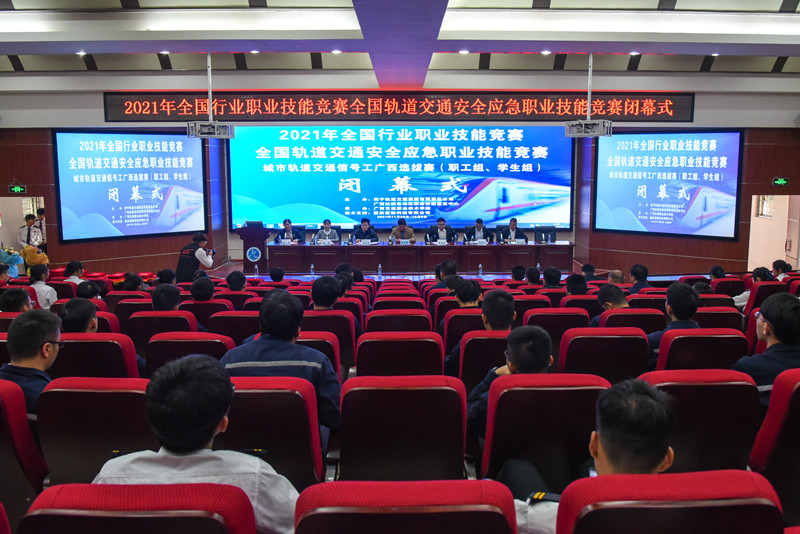 南宁轨道交通集团有限责任公司运营分公司通讯信号中心主任刘俊杰主任在讲话中勉励参赛选手争做高技能人才,坚持走用技能报效祖国之路,为现代化强国的建设,为中国梦的实现贡献绵薄之力。闭幕式在广西壮族自治区职业技能鉴定中心鉴定科科长周雪林的宣布声中落下帷幕。