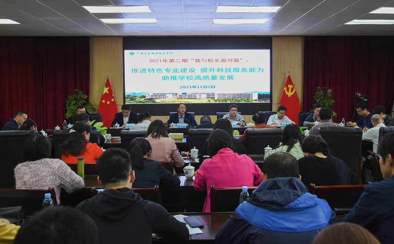(学校办公室 讯 蒋毅刚/文)近日,2021年第二期“我与校长面对面”活动在昆仑校区管理楼五楼会议室举行。李文勇校长、陈正振副校长与各二级学院负责人、专业带头人、校级科研平台和科技创新团队负责人、相关部门负责人等30多人开展互动交流,围绕“推进特色专业建设,提升科技服务能力,助推学校高质量发展”这一主题,充分听取他们的意见和建议,研究解决专业建设和科技服务存在的问题和不足,促进学校高质量发展。