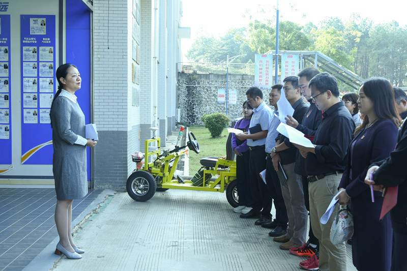 在汽车楼的车间、工场现场,荣获全国党建工作样板支部,首批新时代广西党建工作标杆院系、“双带头人”教师党支部书记工作室的汽车工程学院党总支刘学军书记、吴丹副书记,向与会人员展示该学院以“高质量党建引领专业建设,以专业建设彰显党建成效”为理念,在专业建设、人才培养、课程思政、阵地建设、支部战斗堡垒和党员先锋模范作用发挥等方面的成果。与会人员与汽车工程学院师生共同参加别开生面的“歌声中的党史”微党课活动。