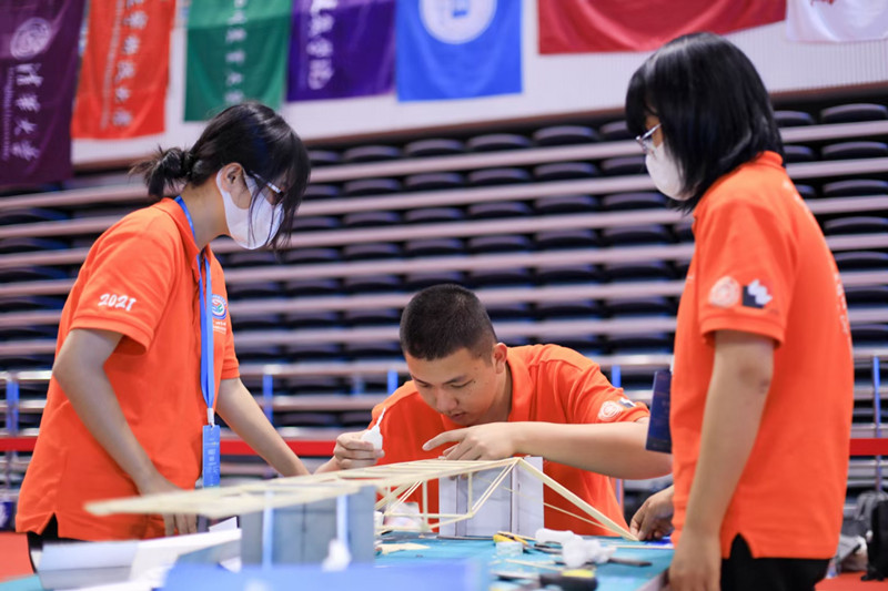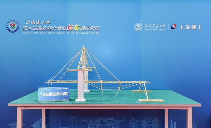 经分区赛选拔,本届全国大学生结构设计竞赛共有来自111所院校的112支参赛队伍在上海交通大学同台竞技。本次竞赛以“变参数桥梁结构模型设计与制作”为题,采用“随机参数设计计算、现场制作陈述答辩加载试验”形式,要求选手利用竹皮、竹条和胶水等材料,在16.5小时内现场设计并制作一个桥梁模型。
