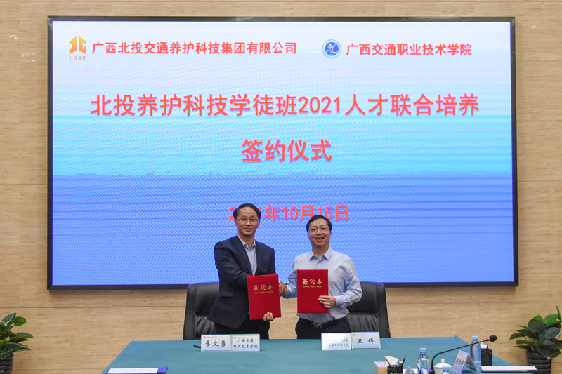 随后,双方围绕校企协同育人、深化产教融合、搭建创新合作平台、加深技术合作研发等方面推进校企共建进行交流,签约并宣布成立北投养护科技学徒班。