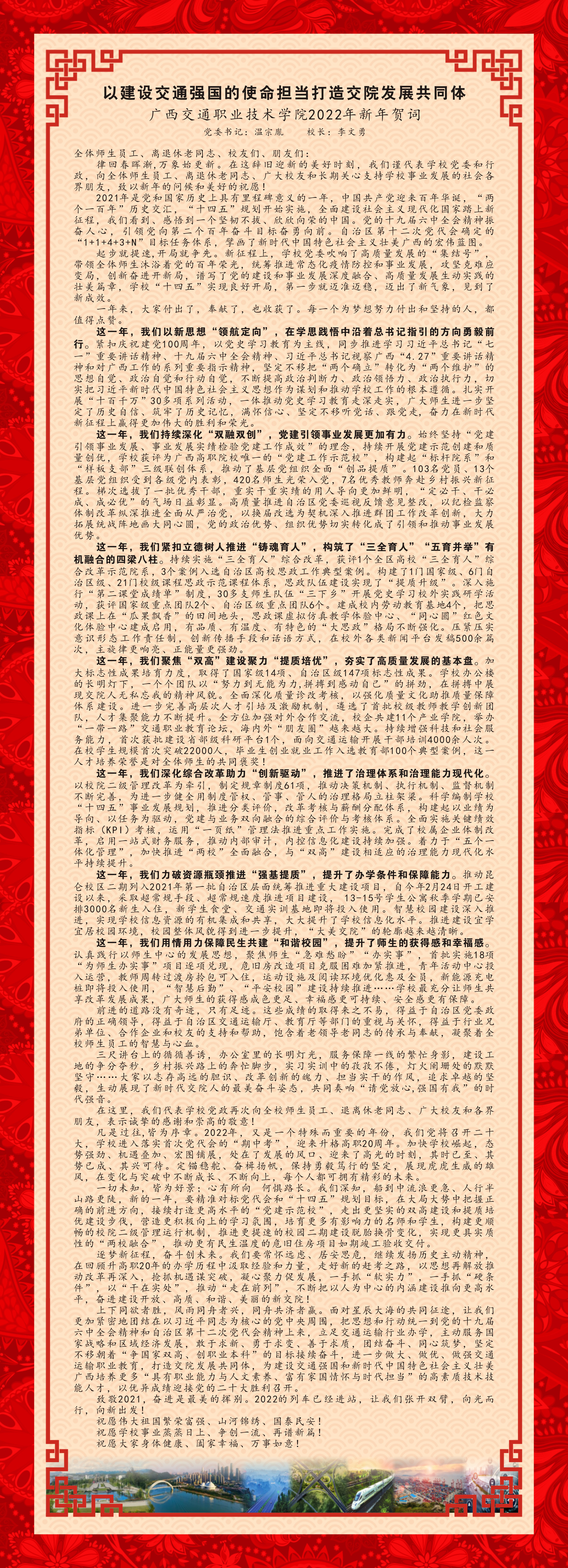 书记校长发表新年贺词——以建设交通强国的使命担当打造交院发展共同体