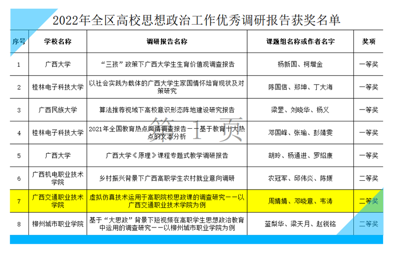 (思政部 讯 吴长苏、朱青穗/文、图)近日,自治区教育厅公布2022年全区高校思想政治工作优秀调研报告和工作案例获奖名单,PP电子思政部周婧婧老师、邓晓意老师、韦涛老师撰写的调研报告《虚拟仿真技术运用于高职院校思政课的调查研究——以PP电子游戏网站为例》荣获二等奖。