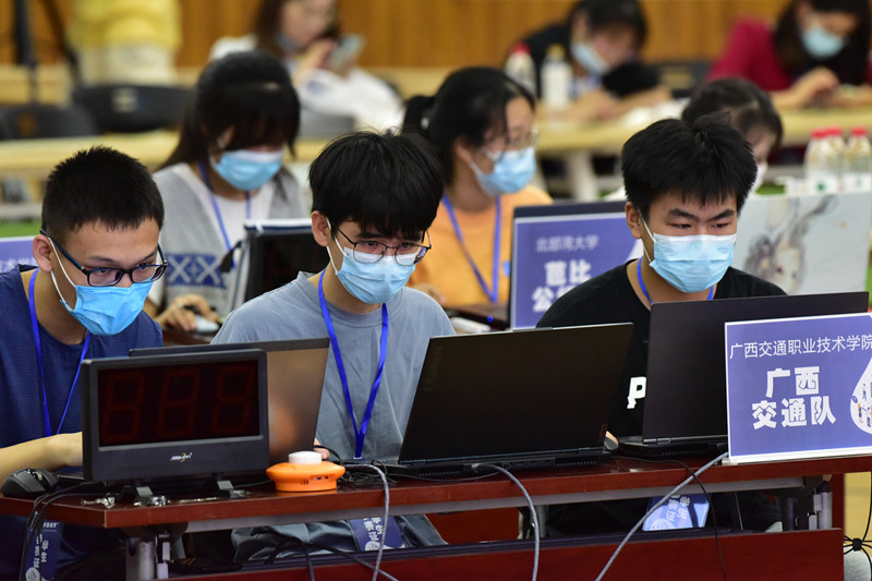 本次大赛从4月份开始启动,分为个人赛、团体初赛、团体决赛三个阶段,全区共有1.6万名在校学生参与。通过个人赛、团体线上初赛等环节最后有20支队伍进入团体赛决赛(其中5支队伍来自高职高专院校)。PP电子交通信息工程学院廖光理、鸡永华、兰成亮三位同学组成的广西交通队经过两轮角逐入围决赛