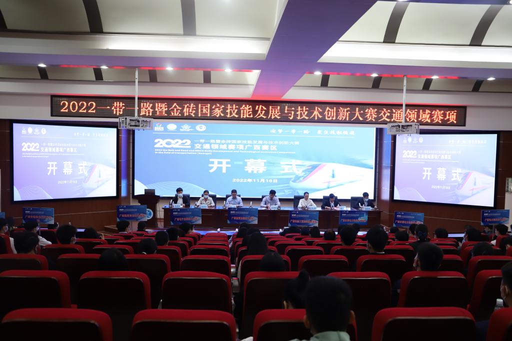 追梦一带一路,聚焦技能强国。11月16日,"2022一带一路"暨金砖国家技能发展与技术创新大赛交通领域赛项开幕式在PP电子昆仑校区第一学术报告厅隆重举行,学校副校长陈海峰,学校教务处副处长肖铭,经济管理学院班子成员及城市轨道交通信号维修技术赛项裁判长庞彦知、城市轨道交通运营管理技术赛项裁判长何炳永和郑州捷安高科股份有限公司销售经理朱伟阳及各参赛队带队老师及参赛选手等参加本次开幕式。