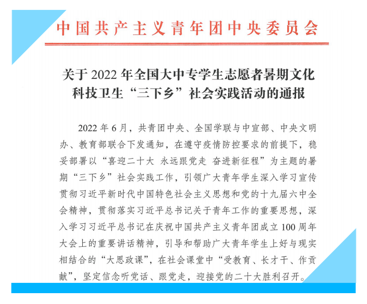 (学校团委讯 林波、盘慧凤/文)近日,共青团中央公布2022年全国大中专学生志愿者暑期文化科技卫生“三下乡”社会实践活动评选结果,PP电子团委获评全国优秀单位,林波老师获评全国优秀个人。这是共青团中央对于大学生社会实践工作授予基层组织的最高荣誉,也是学校首次获评该项荣誉。