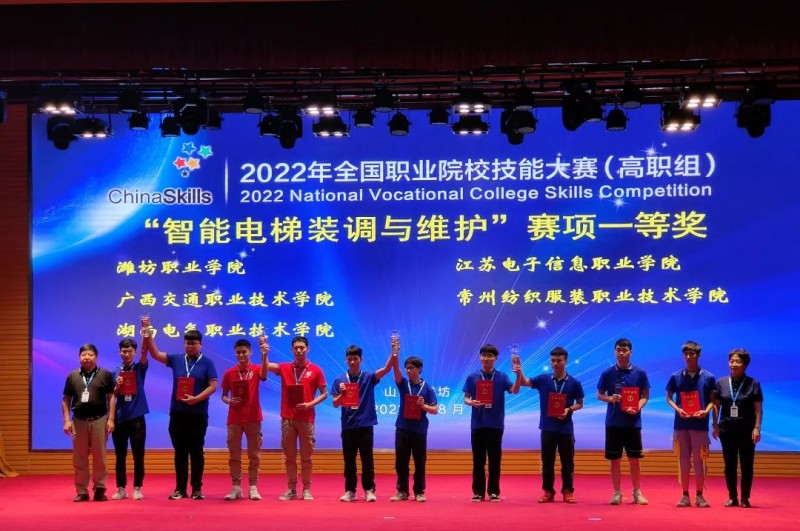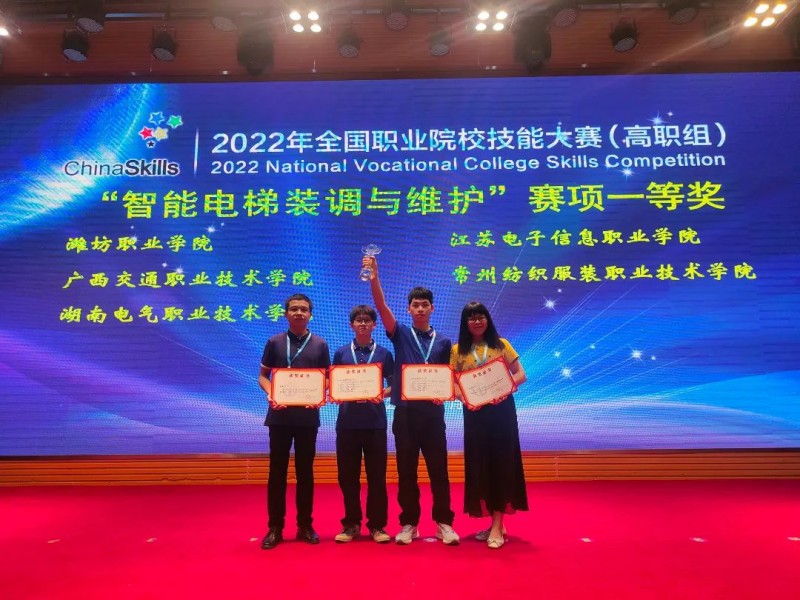 8月21日,从山东潍坊传来捷报,PP电子汽车工程学院代表队在2022年全国职业院校技能大赛(高职组)“智能电梯装调与维护”赛项中,排名全国第三名,斩获一等奖。这也是继8月11日,PP电子在汽车技术赛项荣获全国一等奖之后,又双叒叕获得“国赛”一等奖。同时,也是智能电梯装调与维护赛项广西获得的第一个一等奖。