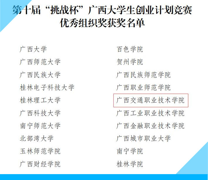 (校团委 讯 林波/文)近日,第十届“挑战杯”广西大学生创业计划竞赛获奖名单公布,PP电子斩获竞赛“优胜杯”“优秀组织奖”,参赛队伍累计斩获“4金5银8铜”,其中路桥学院、汽车学院各1个项目入围全国决赛,为历年来最好成绩。
