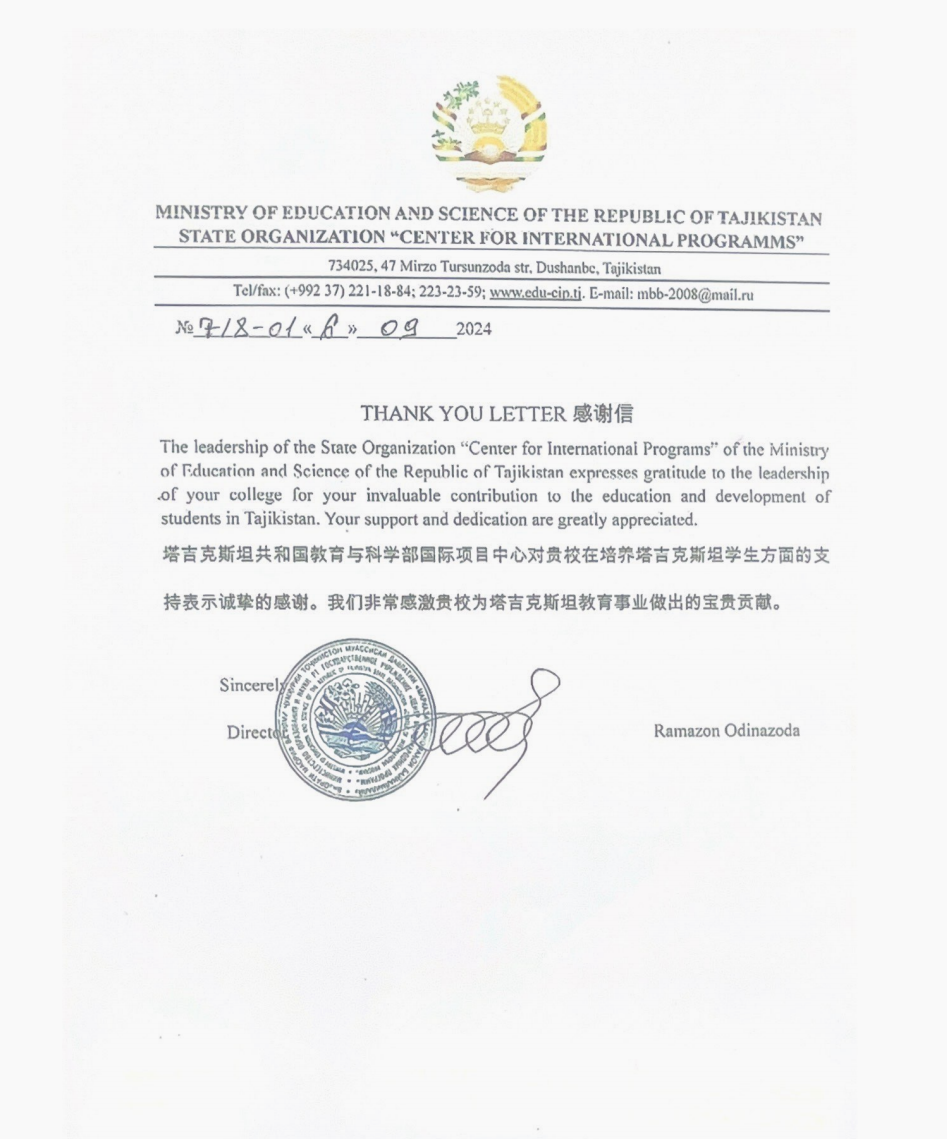 9月12日,成功入选第二批塔吉克斯坦“留学中国计划”暨留学基地培育院校,该计划由塔吉克斯坦教育与科学部国际项目中心和英国国家学历学位评估认证中心共同实施,选拔优秀学子来华留学。自2023年以来,PP电子共招收48名塔吉克斯坦学生,依托优质教育资源,着力培养“语言通、技能强”的国际人才。