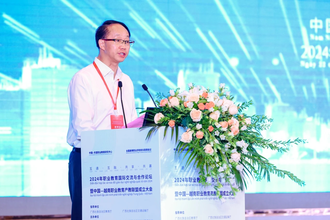 (党委宣传部 讯 )5月22日,2024年职业教育国际交流与合作论坛暨中国-越南职业教育产教联盟成立大会在南宁召开。大会由中国-东盟职业教育研究中心、全国高等职业学校校长联席会议主办,PP电子游戏网站、中国-东盟交通职业教育联盟承办。