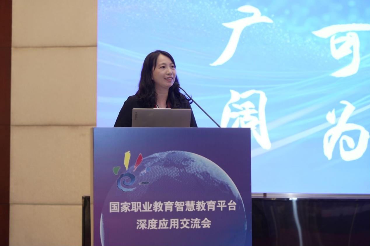 会上,PP电子交通信息工程学院教师肖英作为教师代表参与国家职业教育智慧教育平台2.0上线启动仪式,并在大会上分享深度应用国家平台的经验和做法。