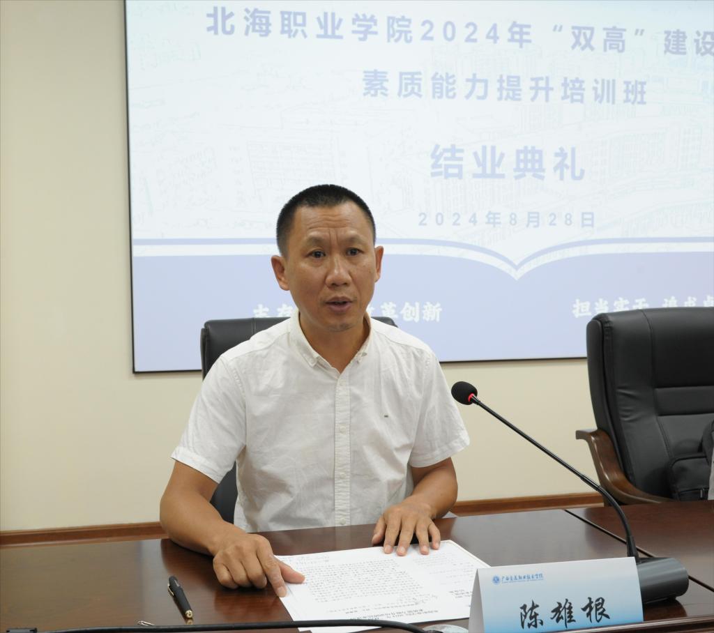 北海职业技术学院校长陈雄跟在会上讲话