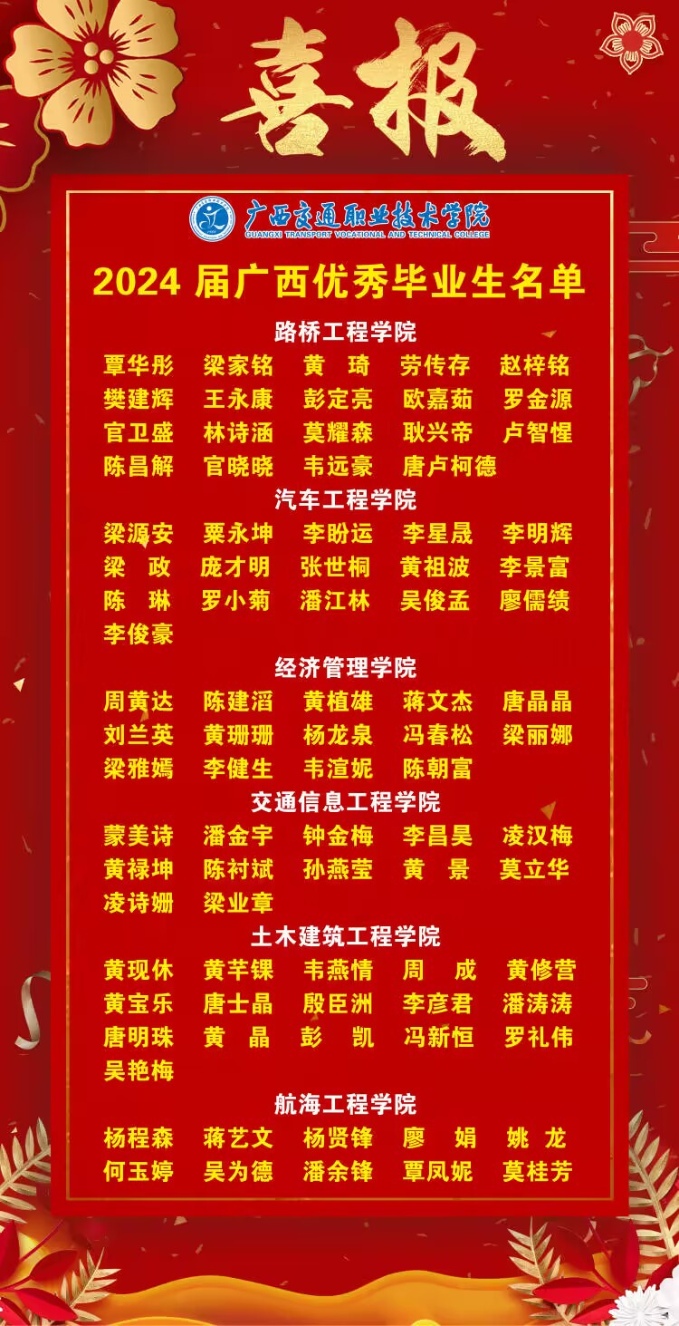 (学生工作处 讯 白灿明/文) 近日,广西壮族自治区教育厅公布2024届广西壮族自治区普通高等教育优秀毕业生名单。PP电子87名学生入选其中。