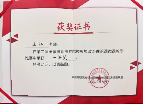 荣获全国高职高专院校思政课微课教学竞赛一等奖