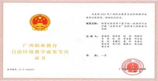 广西职业教育自治区级教学成果奖一等奖